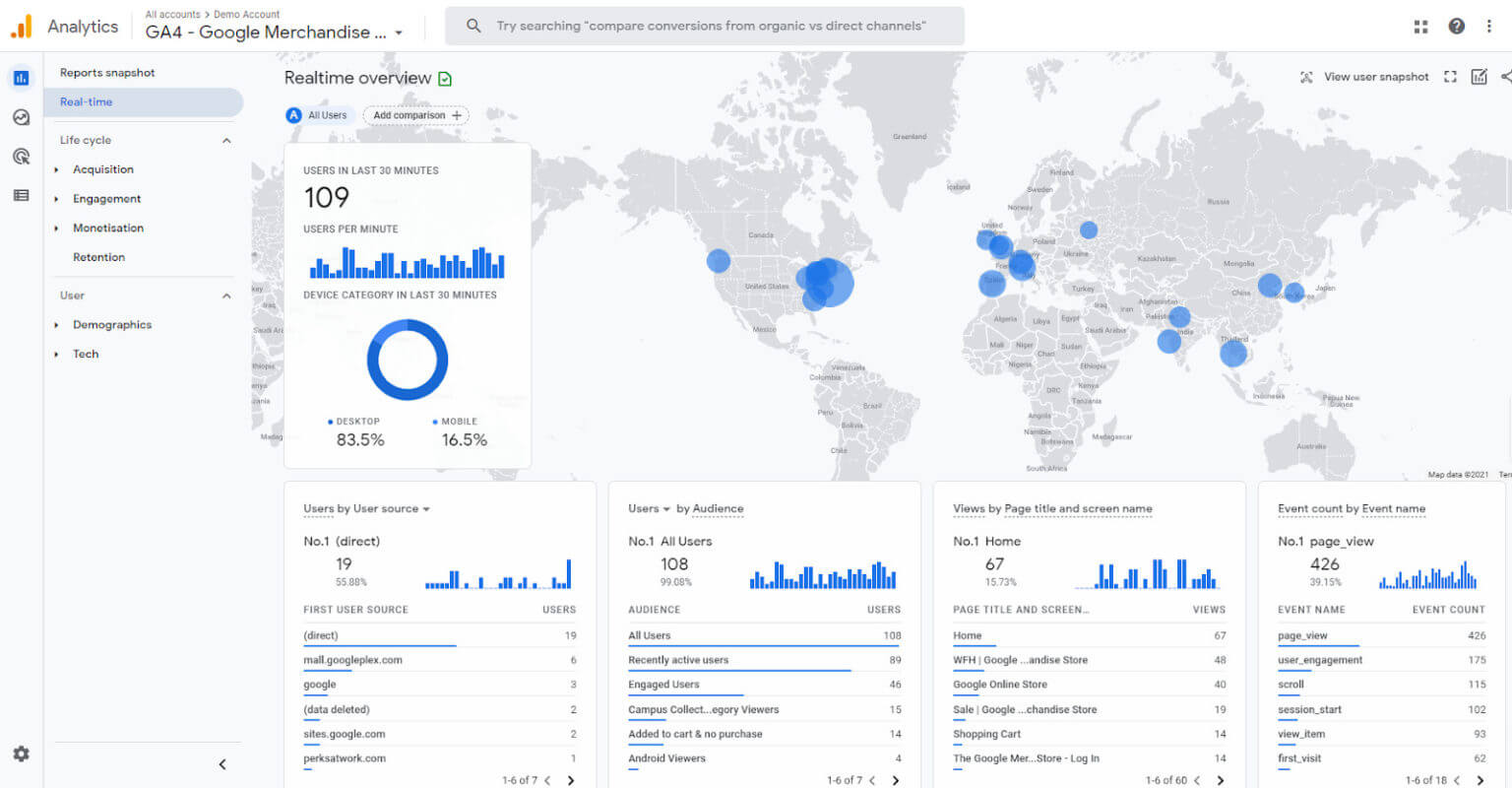 Digər tərəfdən GA4, əlavə məlumat toplamaq üçün hazır vəziyyətdədir. Diqqət daha çox istifadəçilərə yönəlib və hər bir fəaliyyət event kimi qeyd olunur.